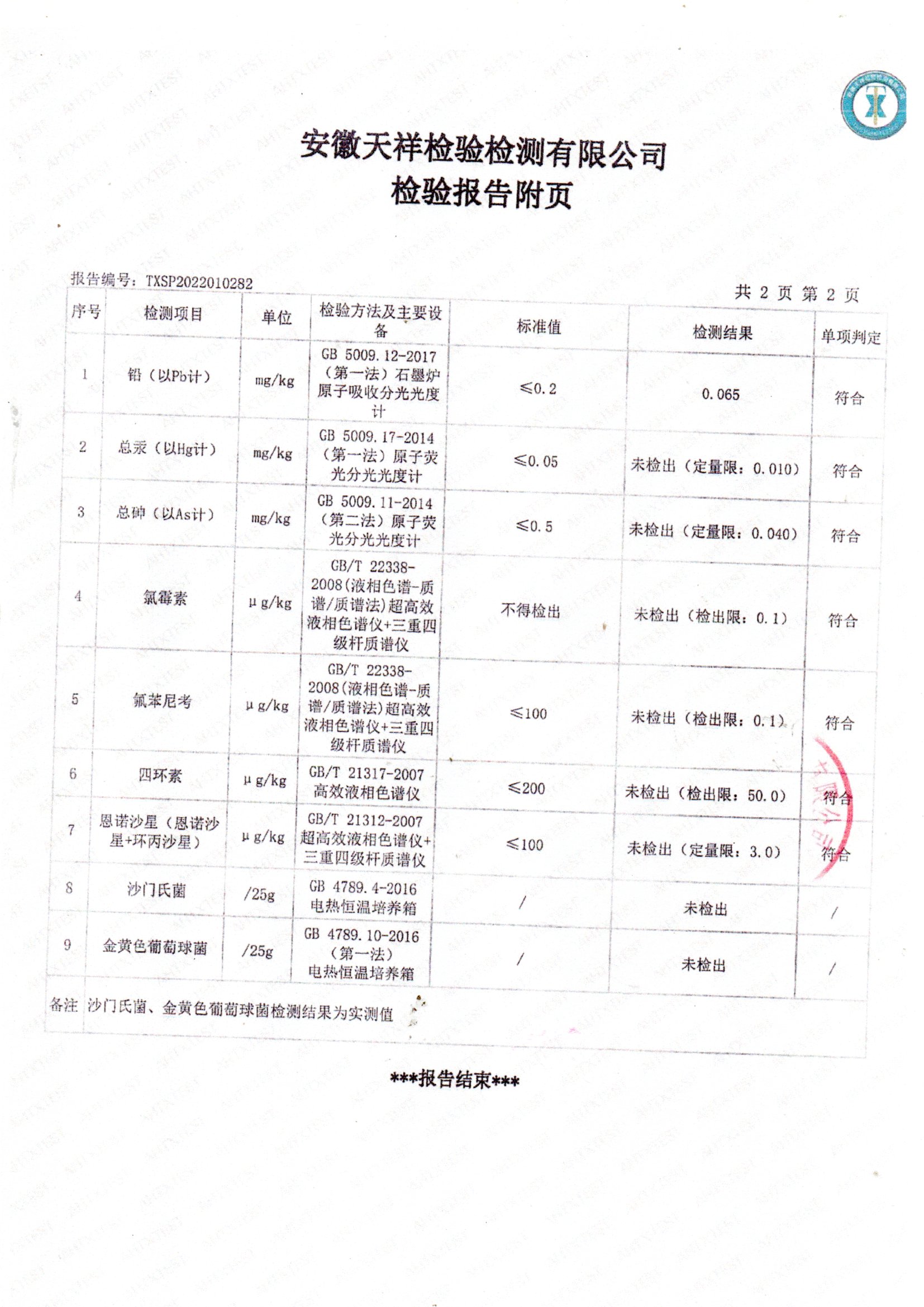 2022年04月鮮雞蛋檢測報告