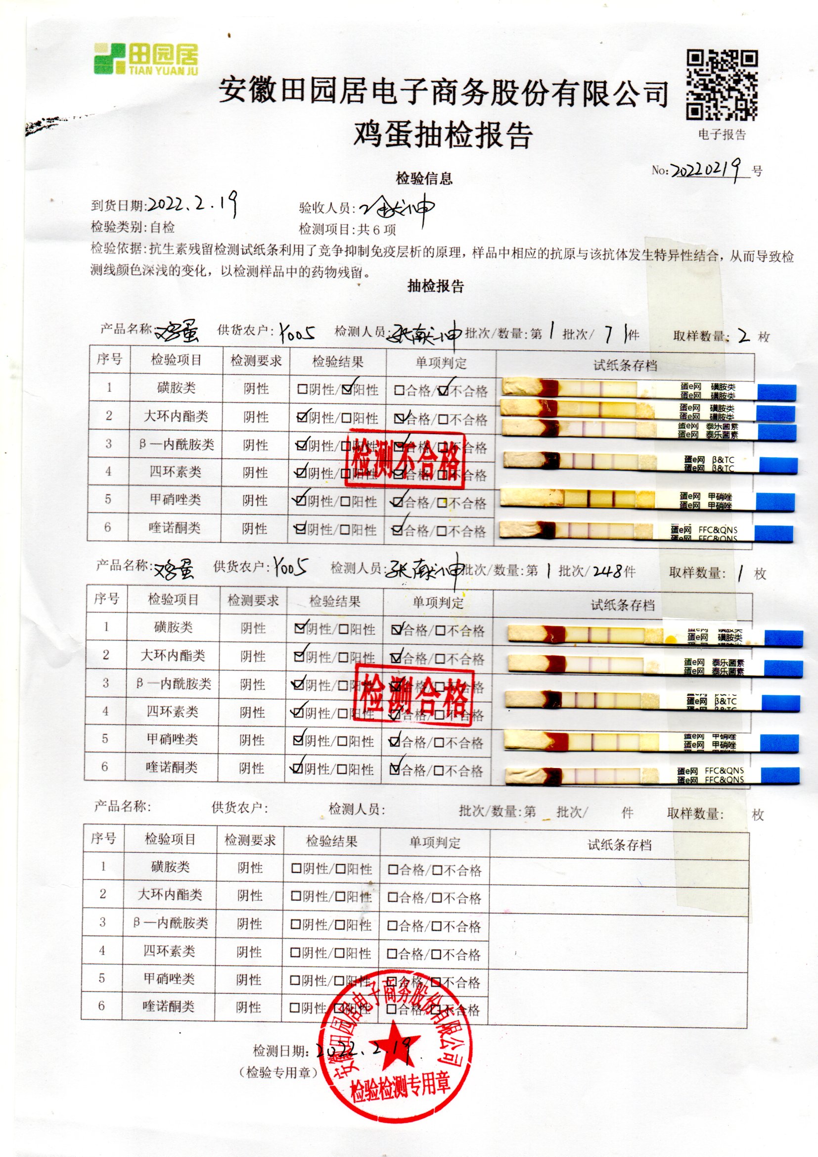 2022年02月19號鮮雞蛋檢測報告