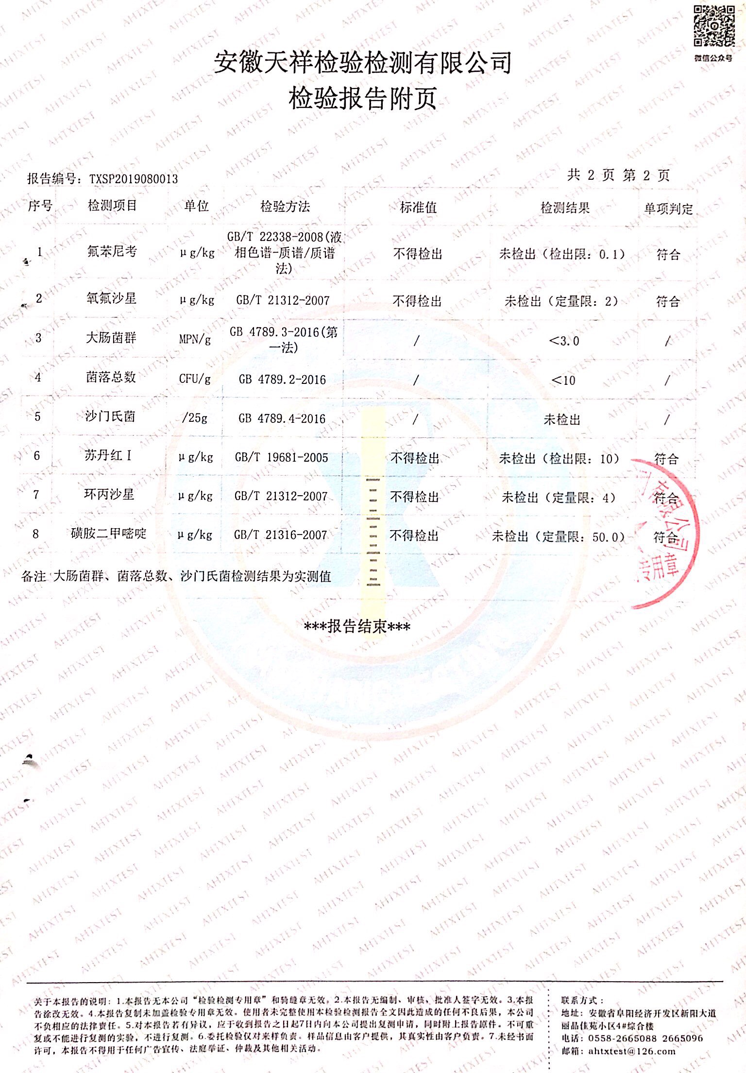 2019年8月雞蛋檢測報告